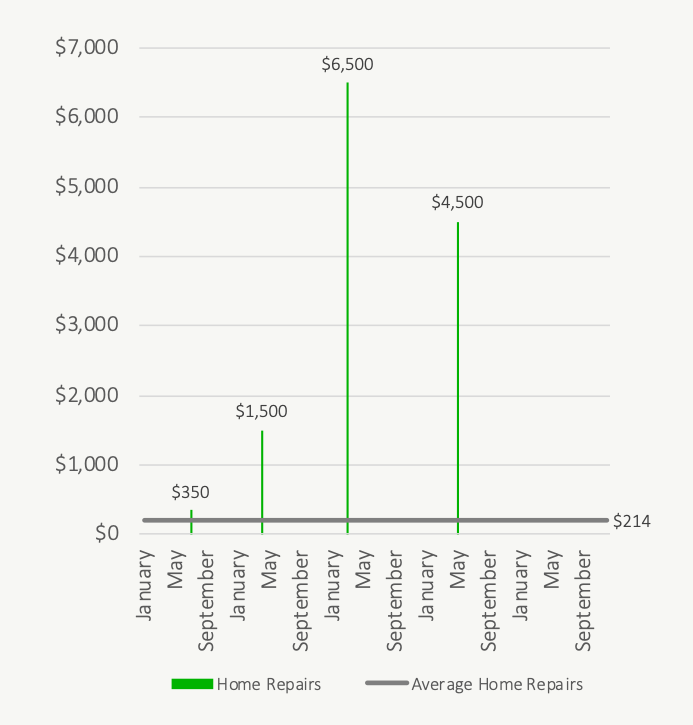 Infrequent expenses are unpredictable by nature, but they’re not entirely unexpected. At some point depreciating assets like homes and vehicles need to be upgraded and repaired, that’s something we should expect. It’s the exact timing of those repairs and upgrades that is harder to predict.