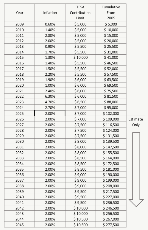 Here is an estimate of possible future TFSA contribution limits for each year: